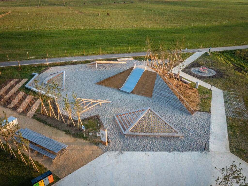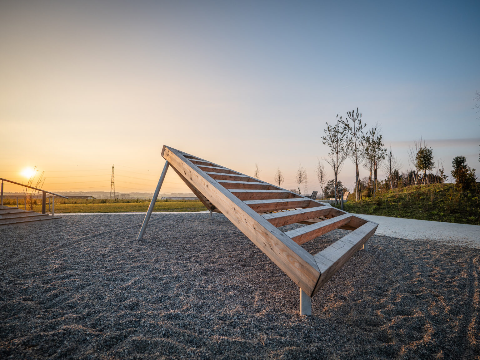 Dans le cadre de la réalisation de cette aire de jeux en Pin Douglas, nous avons pris en compte plusieurs contraintes, notamment la sécurité des utilisateurs et la durabilité du bois face aux intempéries. La coordination avec les différents intervenants a été facilitée grâce à la modélisation 3D. Les poteaux métalliques en acier galvanisé ont été conçus par Equilibre Bois et fabriqués par notre partenaire IAR.